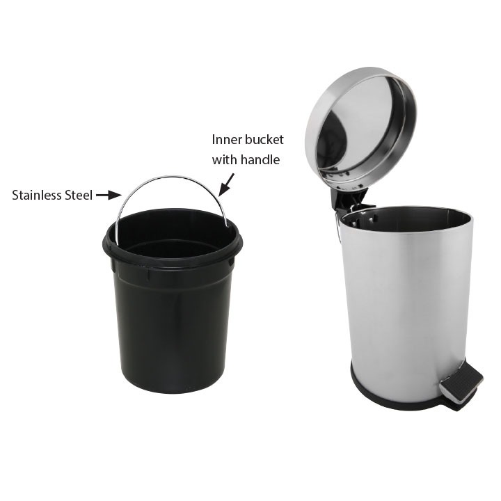 5 Litre Pedallı Paslanmaz Çöp Kovası