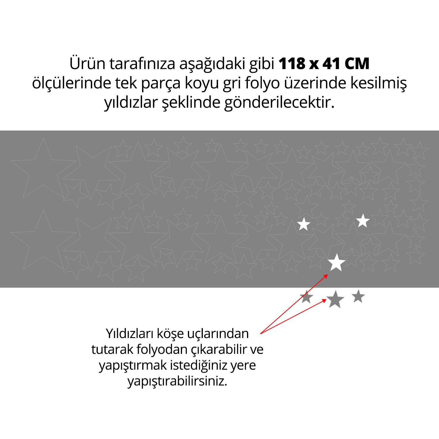 118 x 41 CM paket içerisinde yer alan yıldızların adetleri ve ölçüleri aşağıda belirtilmiştir.