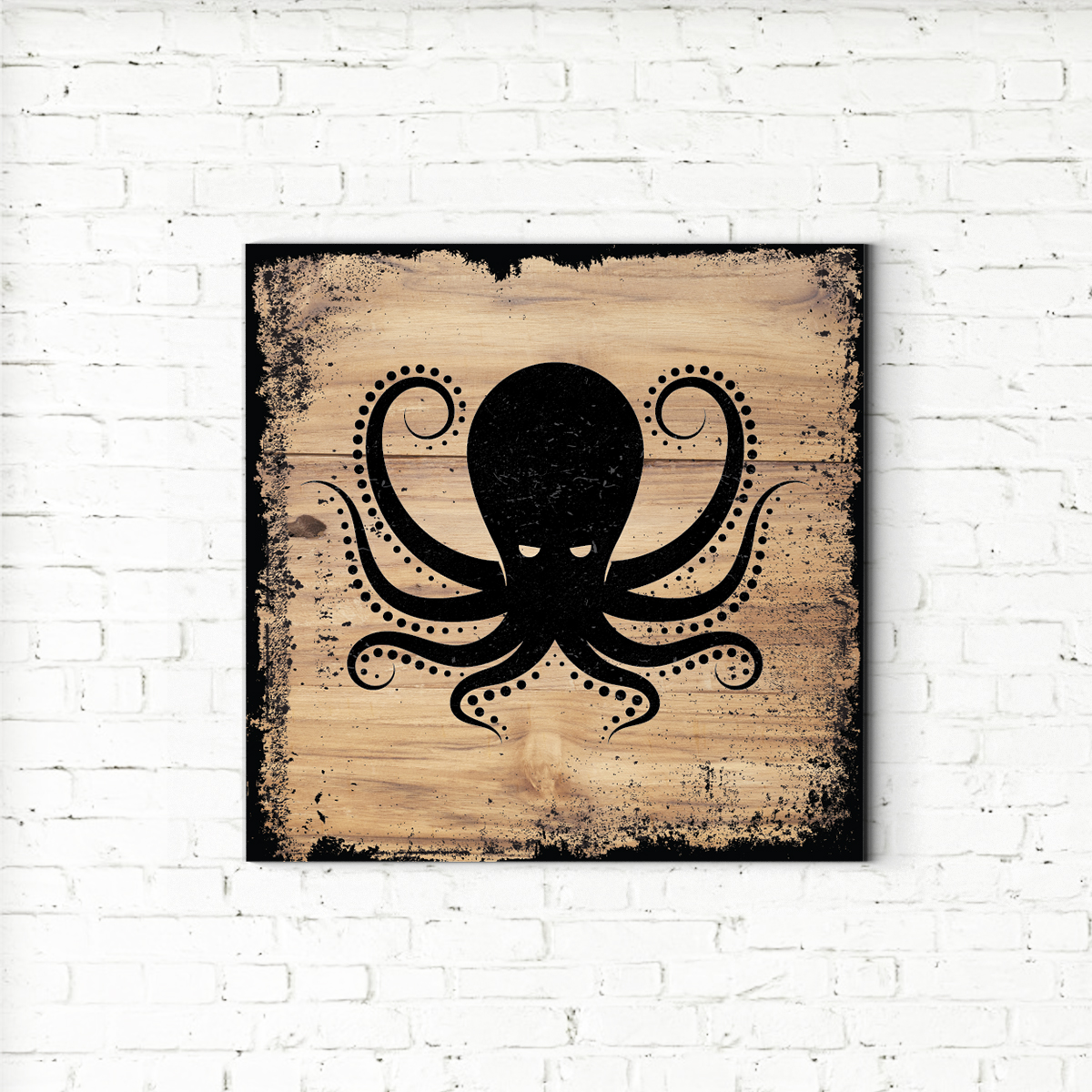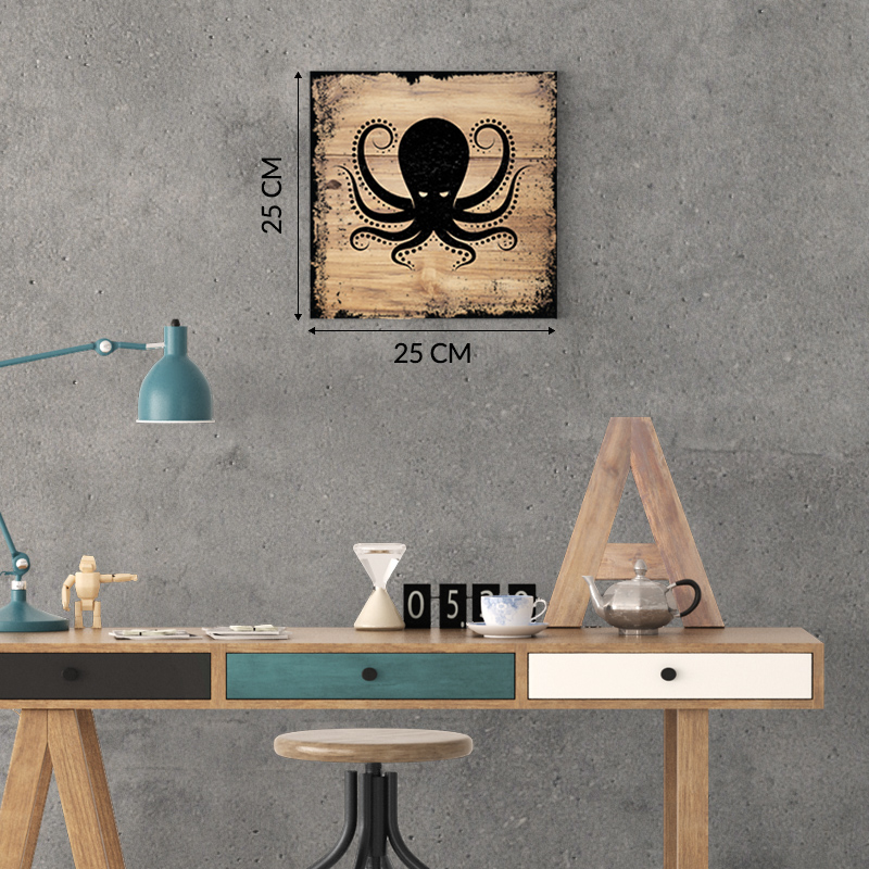 Ahtapot Silüeti Ahşap MDF Tablo, 25x25CM ve 1.8CM Kalınlığında