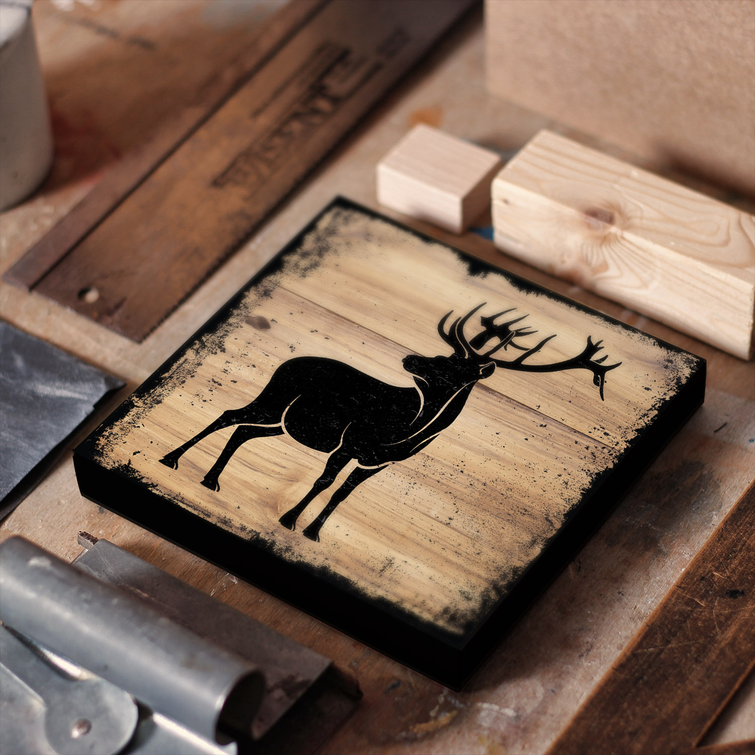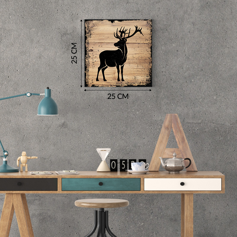 Asil Geyik Silüeti Ahşap MDF Tablo, 25x25CM ve 1.8CM Kalınlığında