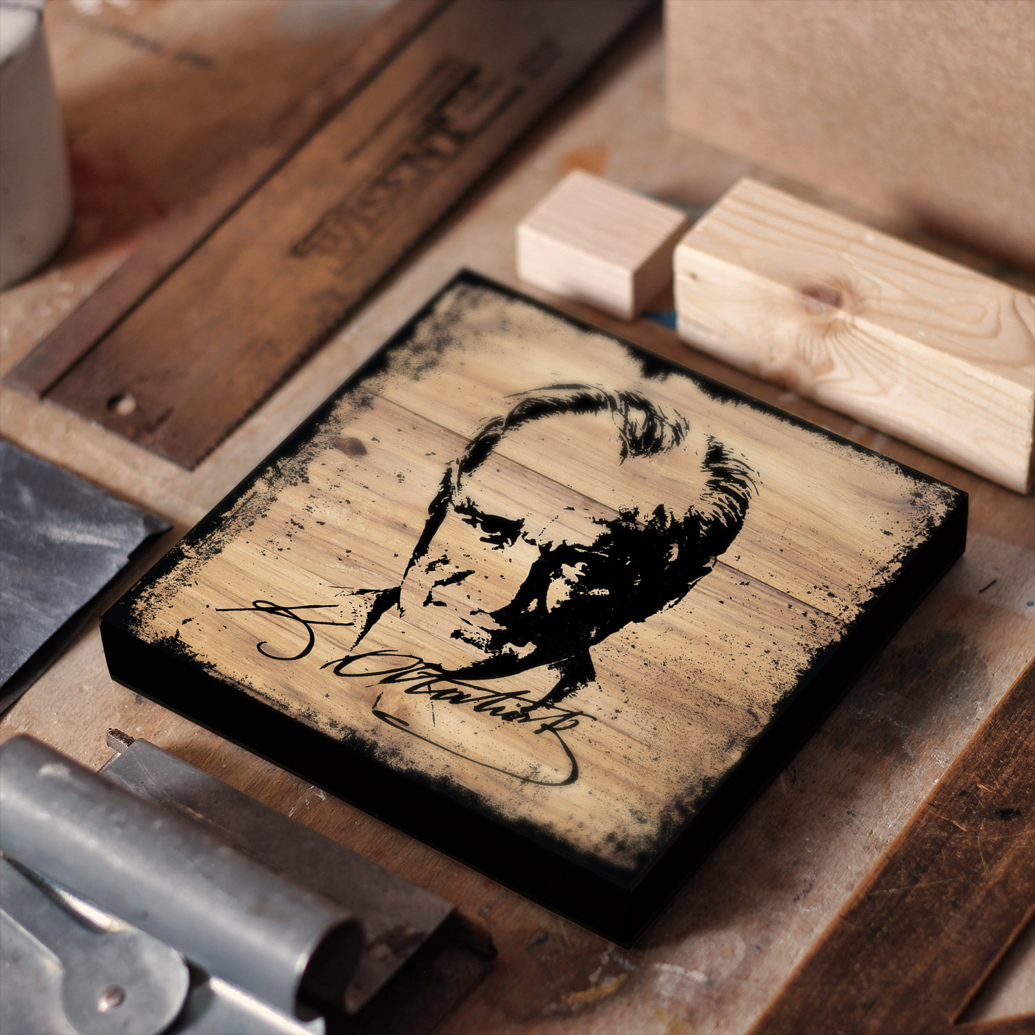 Atatürk Silüeti Ahşap MDF Tablo 02, 25x25CM ve 1.8CM Kalınlığında