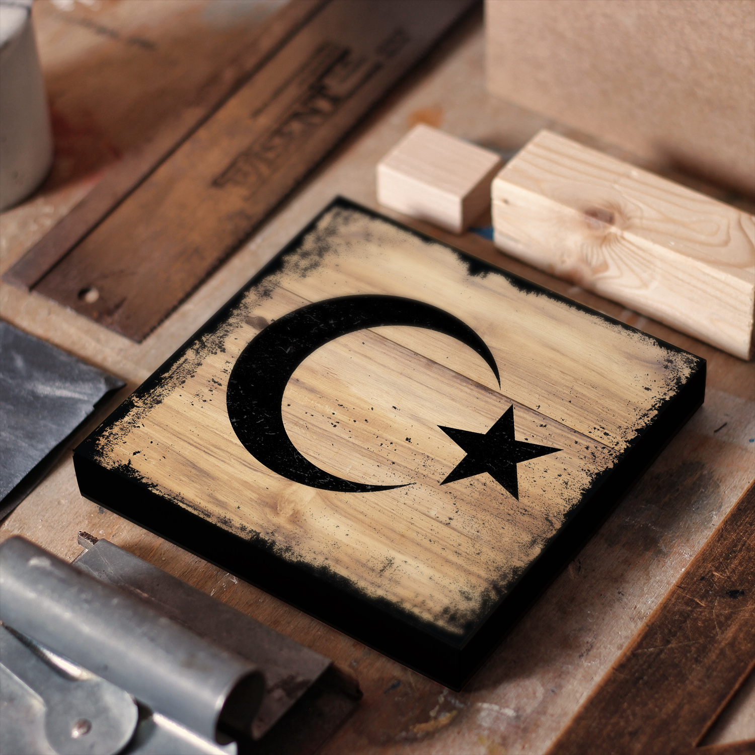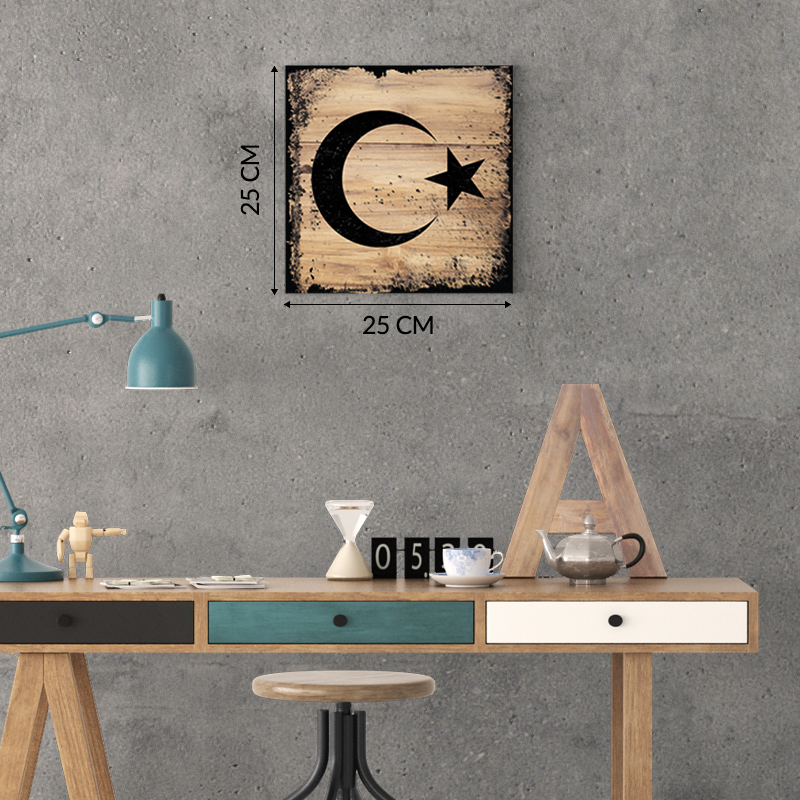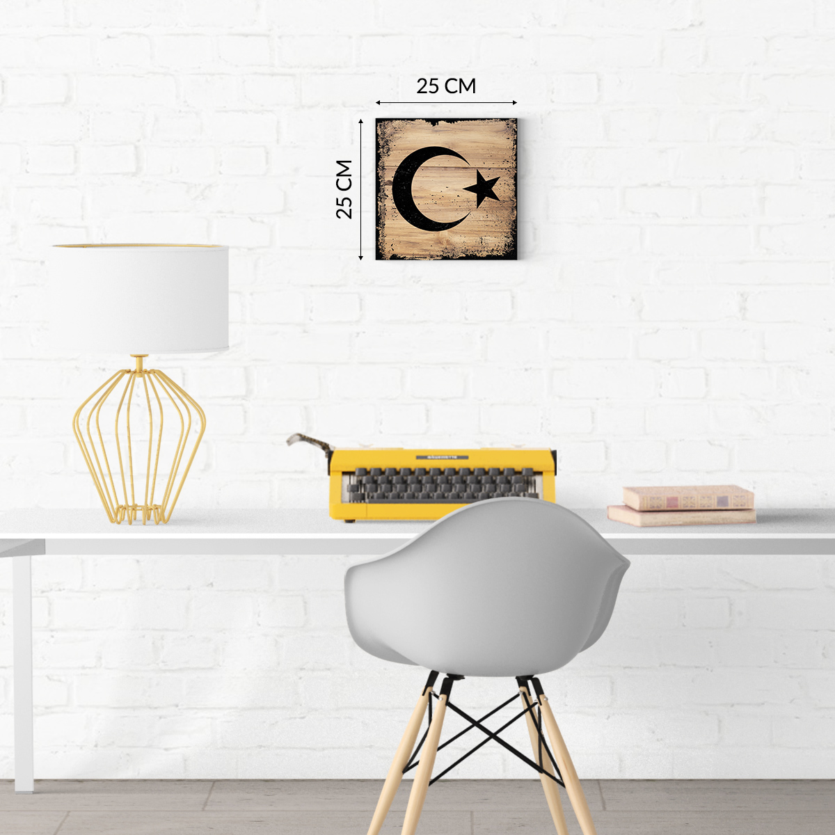 Ay, Yıldız, Türk Bayrağı Silüeti Ahşap MDF Tablo, 25x25CM ve 1.8CM Kalınlığında