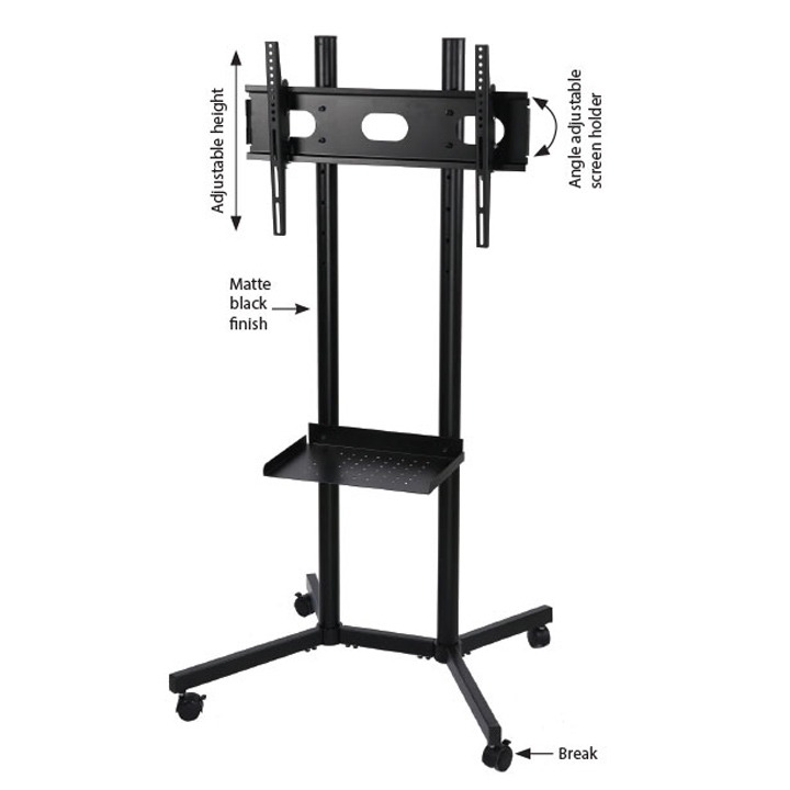Kolaylıkla taşınabilir ayak ve teker yapısına sahiptir. Ekran yüksekliğiniz kolayca ayarlayabilmenize olanak sağlar. Dar alanlarınızda bile kolayca kullanım sağlar. Modern ve kolay kullanımı olan bu TV standı, yerlerin kısıtlı olduğu ofisler ve fuar alanları için idealdir. Kilitli tekerlekleri sayesinde kolayca farklı yerlere taşınabilir.
