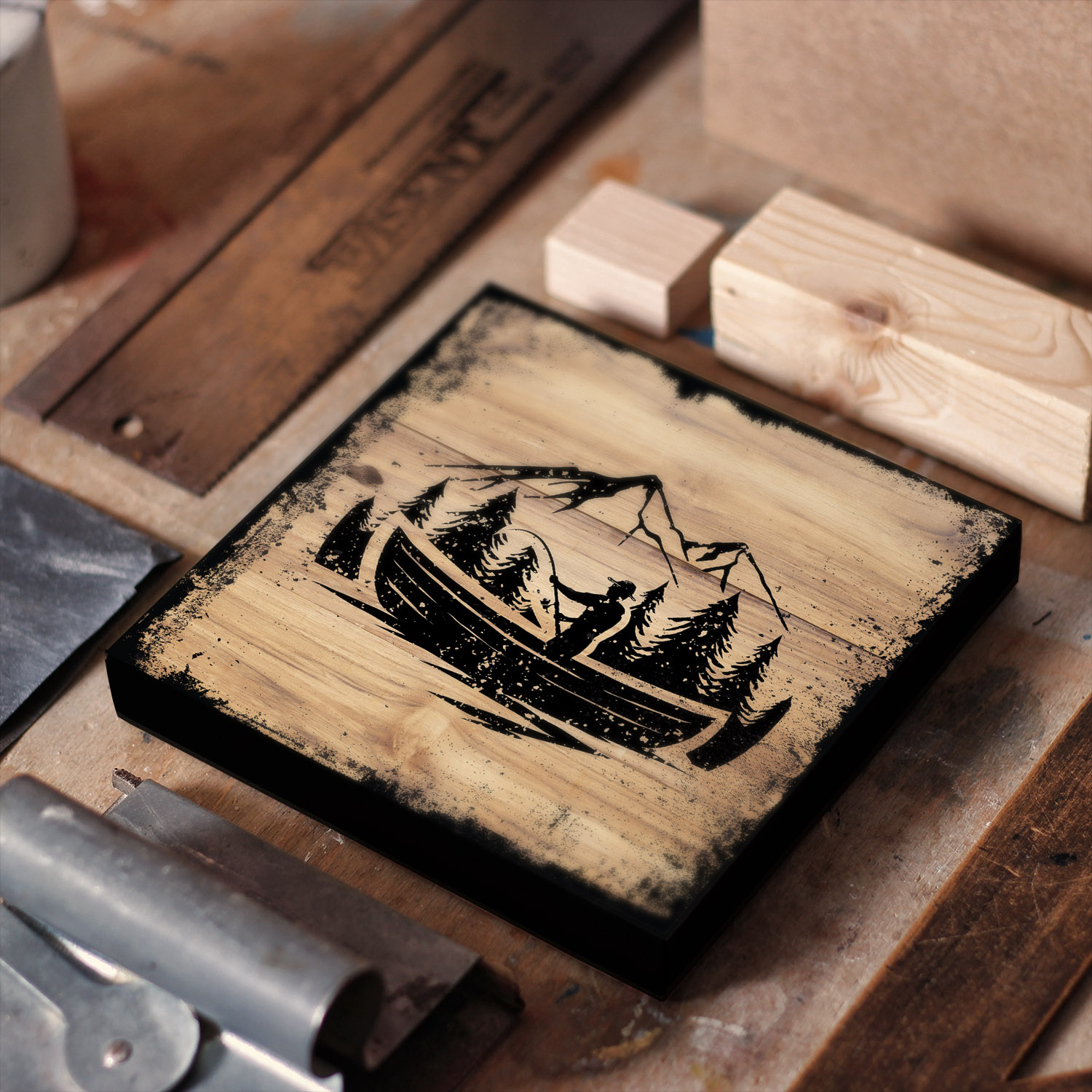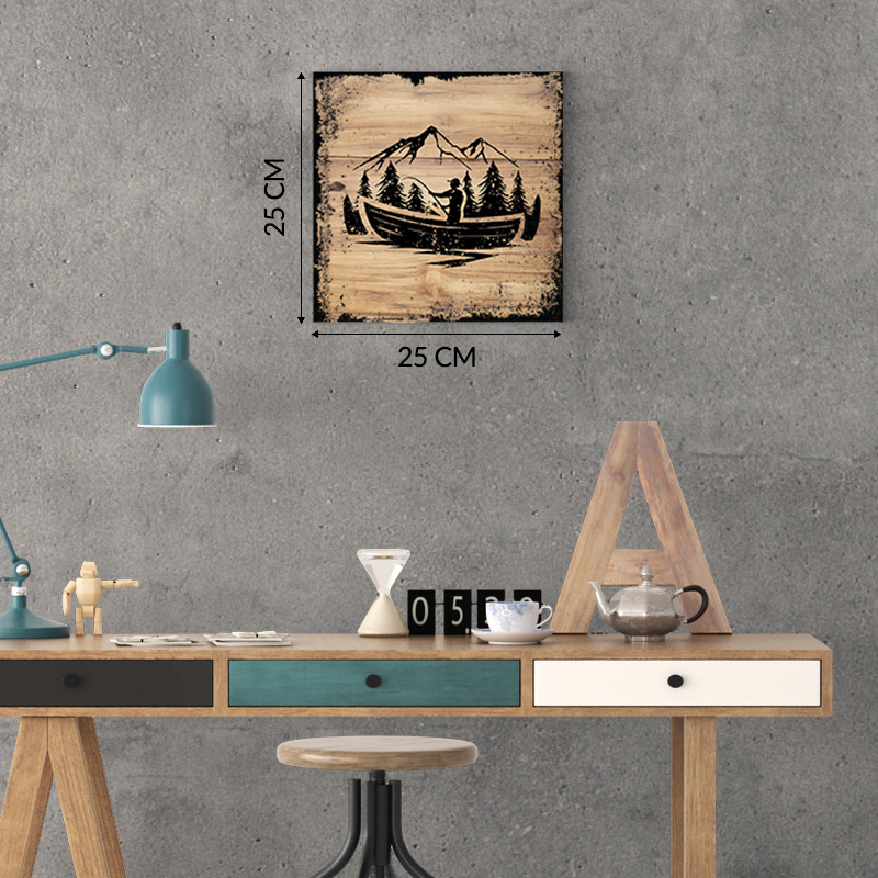 Balıkçı Teknesi Silüeti Ahşap MDF Tablo, 25x25CM ve 1.8CM Kalınlığında