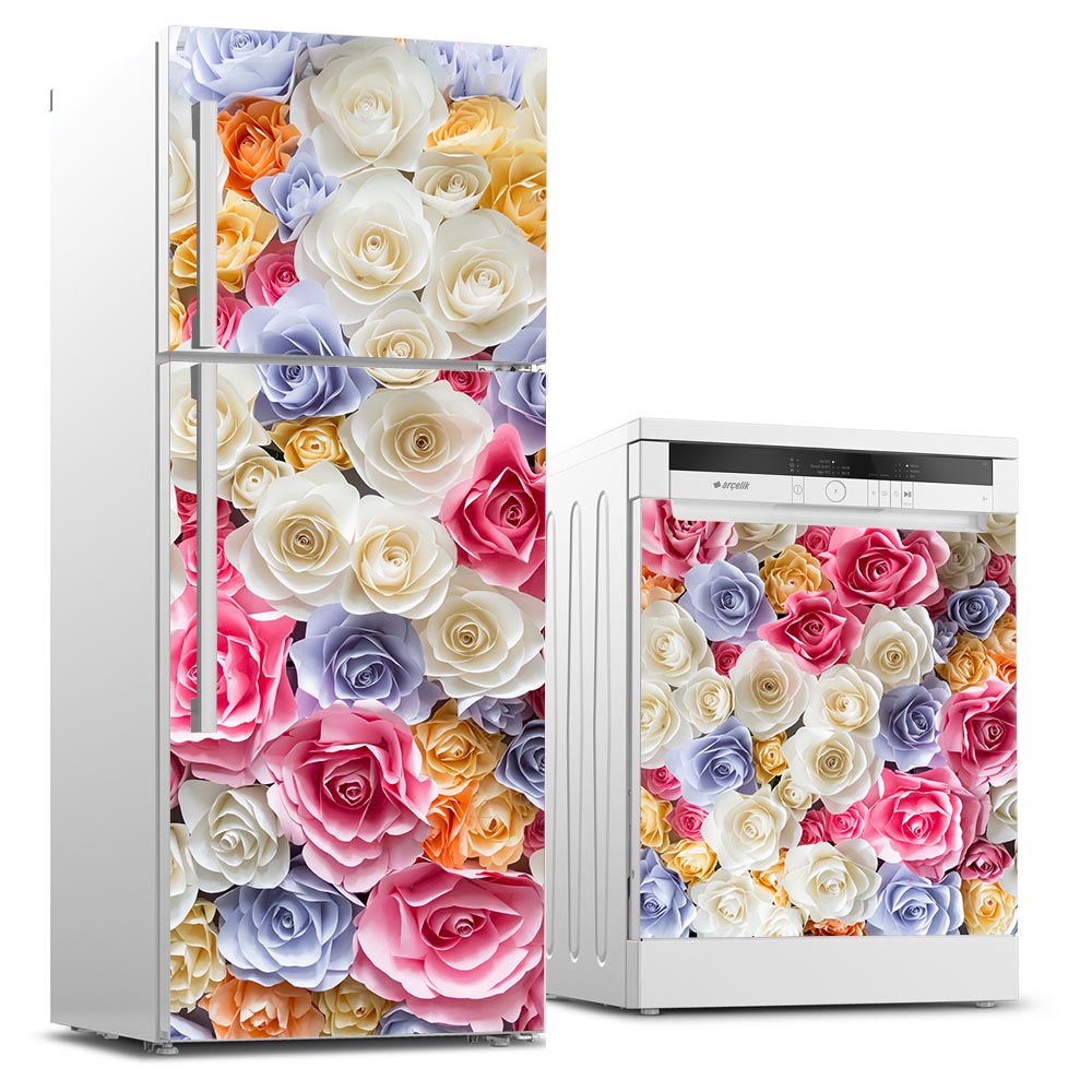 Beyaz eşyanızın üzeri mi çizildi? Ya da beyaz olmasından mı sıkıldınız? Belki de farklı bir renk arayışı içerisindesiniz? Hadi gelin öyleyse buzdolabınızın ve bulaşık makinenizin ön yüzünü rengarenk hale getirerek baştan yaratalım. Üstelik bu stickerlar dilediğiniz zaman kolayca ürününüzün üzerinden herhangi bir zarar vermeden sökülebilir.