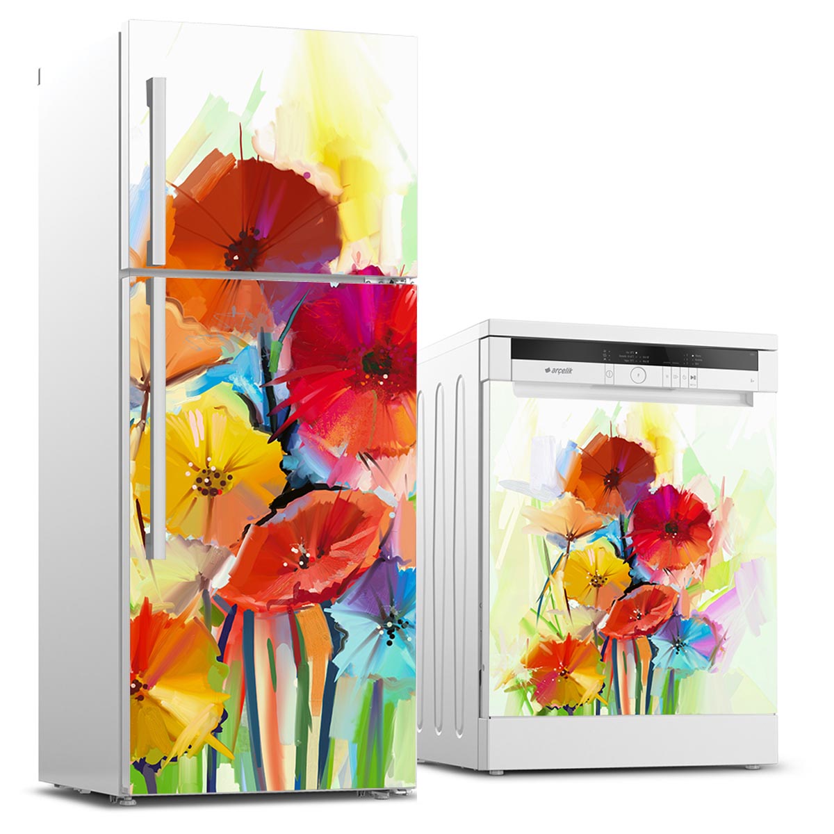 Beyaz eşyanızın üzeri mi çizildi? Ya da beyaz olmasından mı sıkıldınız? Belki de farklı bir renk arayışı içerisindesiniz? Hadi gelin öyleyse buzdolabınınızın ve bulaşık makinenizin ön yüzünü rengarenk hale getirerek baştan yaratalım. Üstelik bu stickerlar dilediğiniz zaman kolayca ürününüzün üzerinden herhangi bir zarar vermeden sökülebilir.