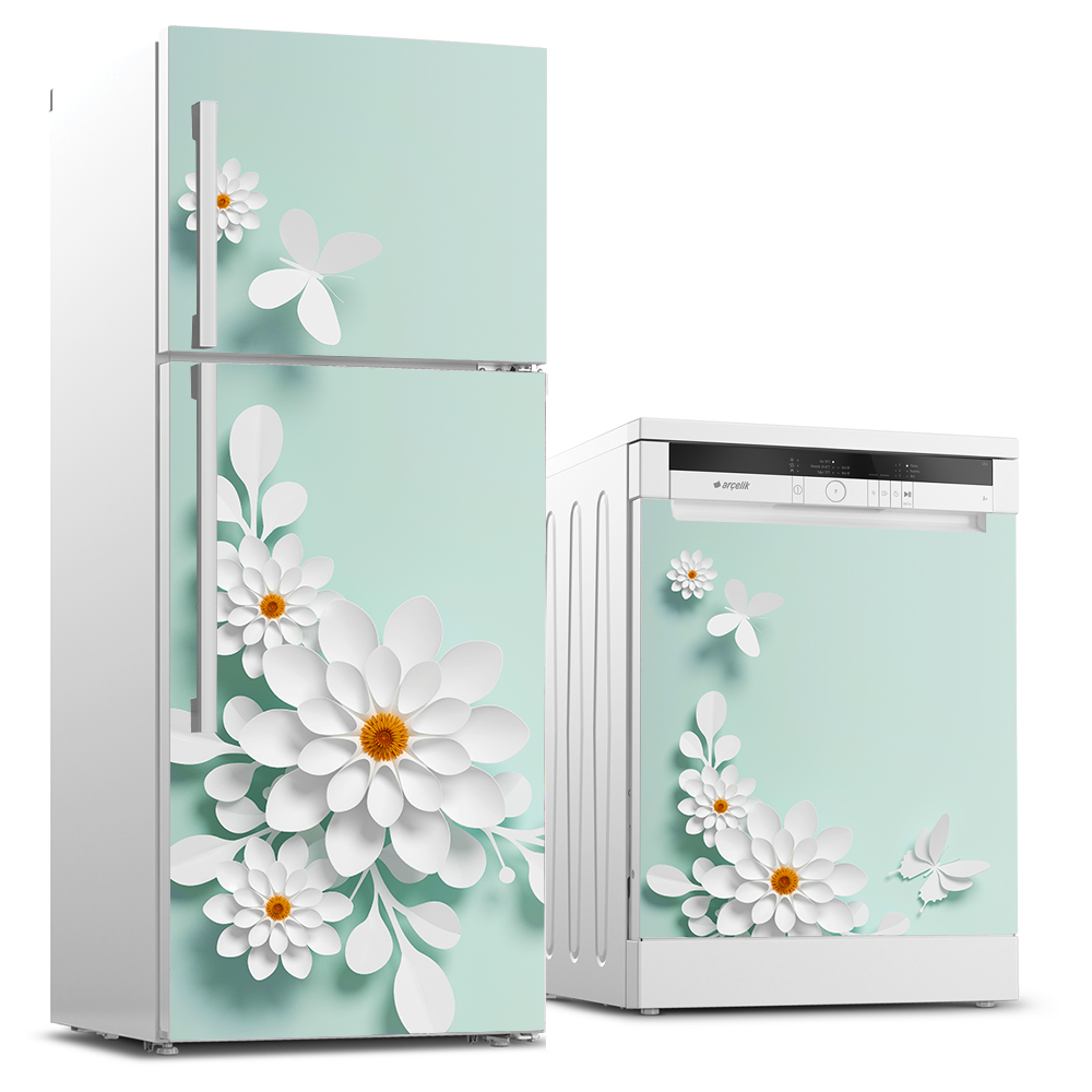 Beyaz eşyanızın üzeri mi çizildi? Ya da beyaz olmasından mı sıkıldınız? Belki de farklı bir renk arayışı içerisindesiniz? Hadi gelin öyleyse buzdolabınınızın ve bulaşık makinenizin ön yüzünü rengarenk hale getirerek baştan yaratalım. Üstelik bu stickerlar dilediğiniz zaman kolayca ürününüzün üzerinden herhangi bir zarar vermeden sökülebilir.