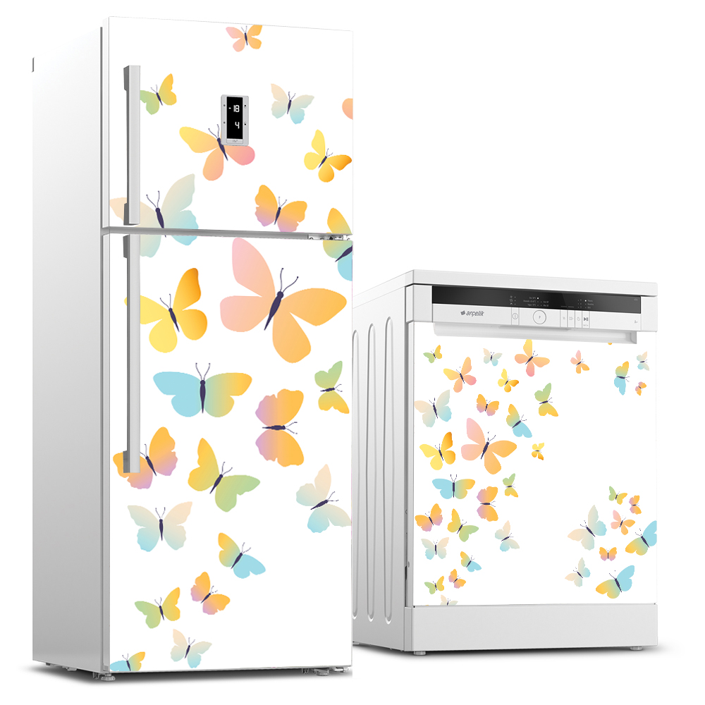 Beyaz eşyanızın üzeri mi çizildi? Ya da beyaz olmasından mı sıkıldınız? Belki de farklı bir renk arayışı içerisindesiniz? Hadi gelin öyleyse buzdolabınınızın ve bulaşık makinenizin ön yüzünü rengarenk hale getirerek baştan yaratalım. Üstelik bu stickerlar dilediğiniz zaman kolayca ürününüzün üzerinden herhangi bir zarar vermeden sökülebilir.