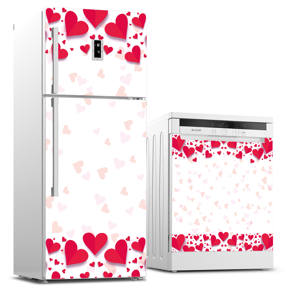 - Ürünümüz iki parça halinde gönderilecektir. 1 adet bulaşık makinesi ve 1 adet buzdolabı kaplama sticker.