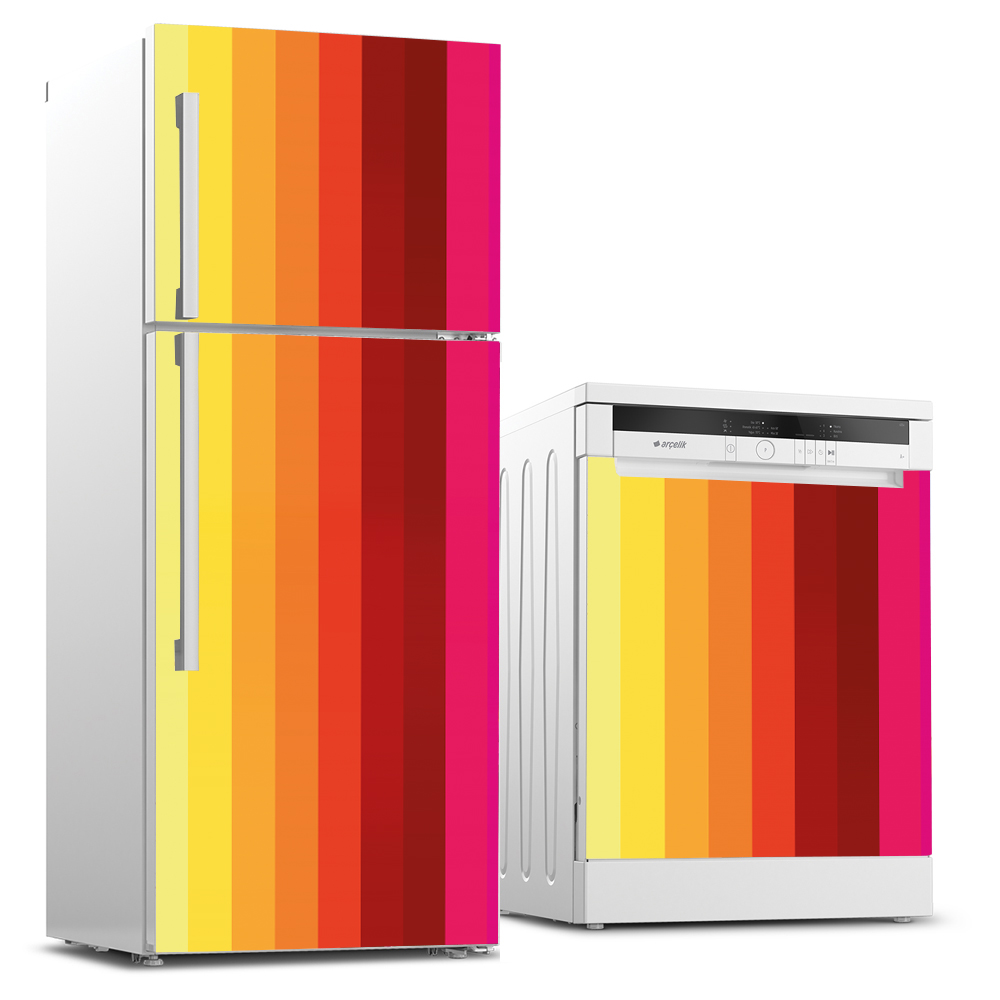 Beyaz eşyanızın üzeri mi çizildi? Ya da beyaz olmasından mı sıkıldınız? Belki de farklı bir renk arayışı içerisindesiniz? Hadi gelin öyleyse buzdolabınınızın ve bulaşık makinenizin ön yüzünü rengarenk hale getirerek baştan yaratalım. Üstelik bu stickerlar dilediğiniz zaman kolayca ürününüzün üzerinden herhangi bir zarar vermeden sökülebilir.