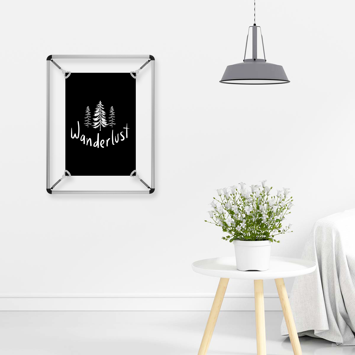 yaylar posterin gergin durmasını, plastik klipsler posterin kolayca değiştirilmesini ve