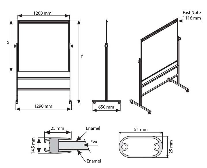 Bizlere ihtiyacımız olandan da fazla özellik sunan bu ürün ayarlanabilir ve dönebilir tahtası sayesinde istenilen açıda kullanılabilir. Alüminyumdan yapılmış iskeleti üzerinde tahta kalemi, silgi gibi yazı tahtası aksesuarlarını koyacak bir bölme de vardır. Beyaz yazı tahtası birçok işlevli özelliği dışında beyaz yüzeyi sayesinde projeksiyon perdesi olarak da kullanılır.