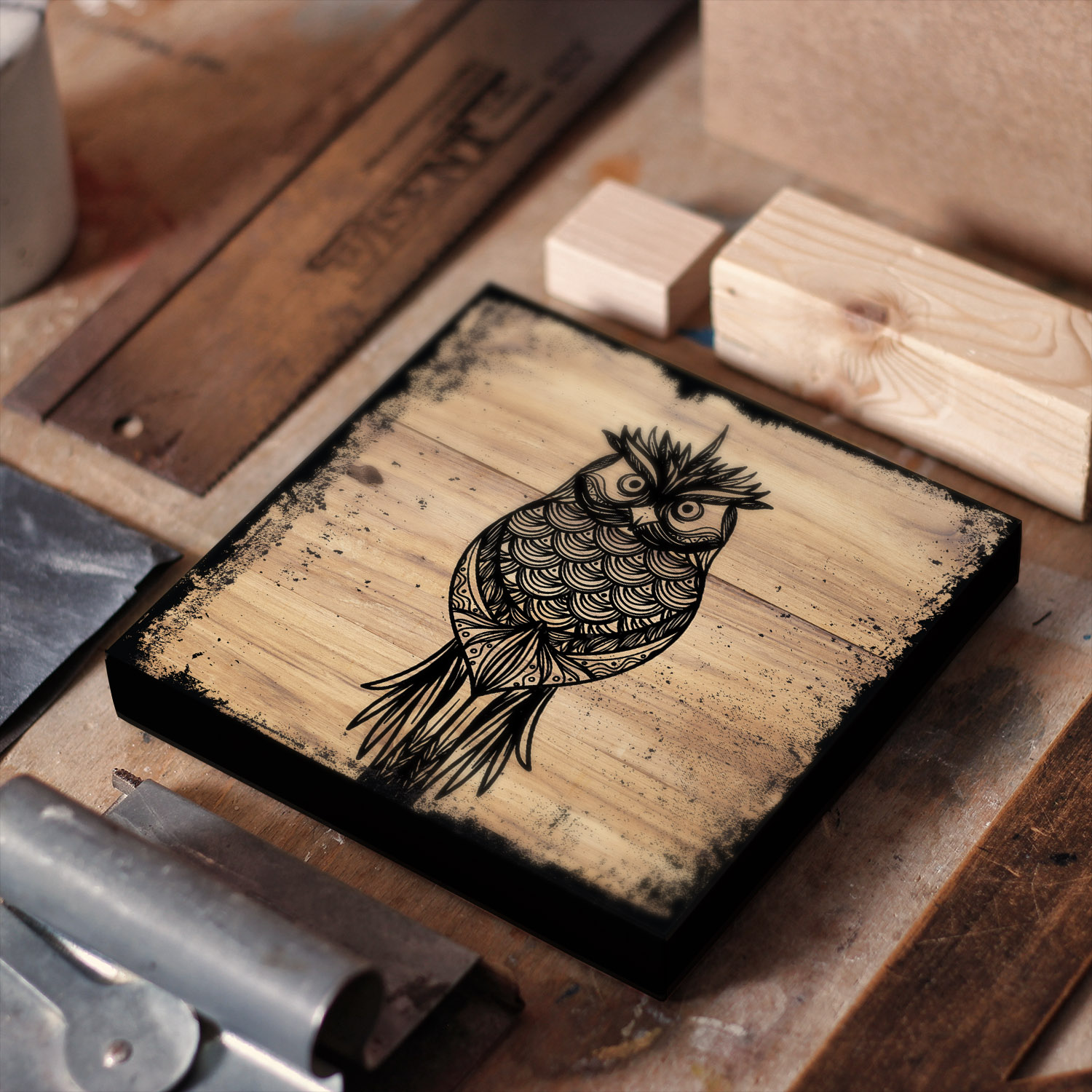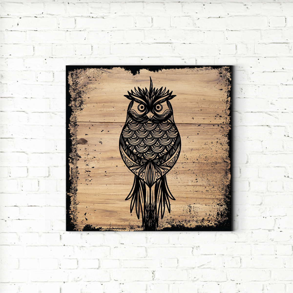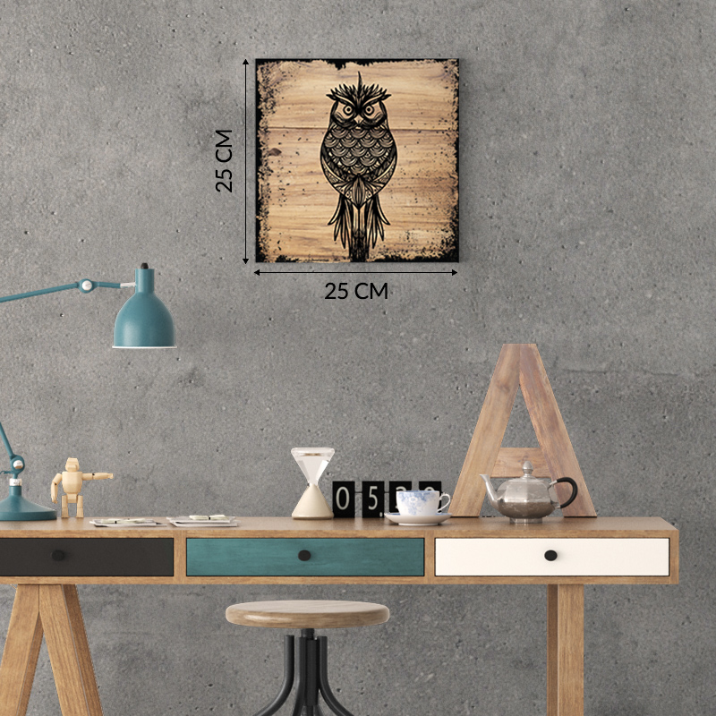 Düşünceli Baykuş Silüeti Ahşap MDF Tablo, 25x25CM ve 1.8CM Kalınlığında