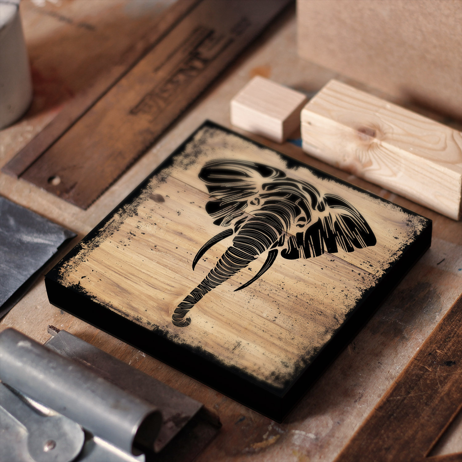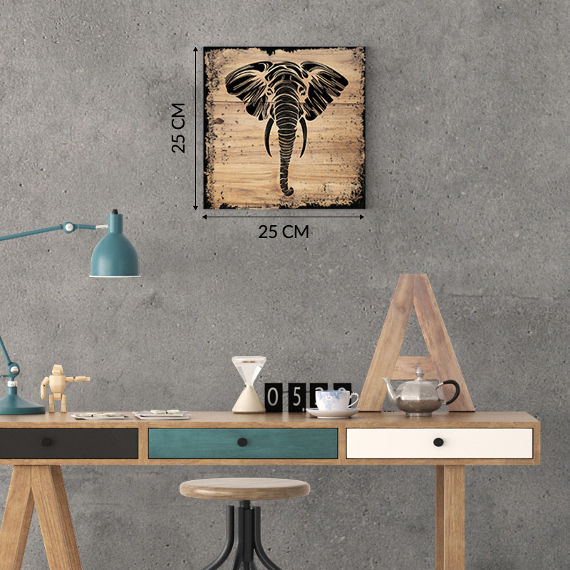 Fildişi Silüeti Ahşap MDF Tablo, 25x25CM ve 1.8CM Kalınlığında