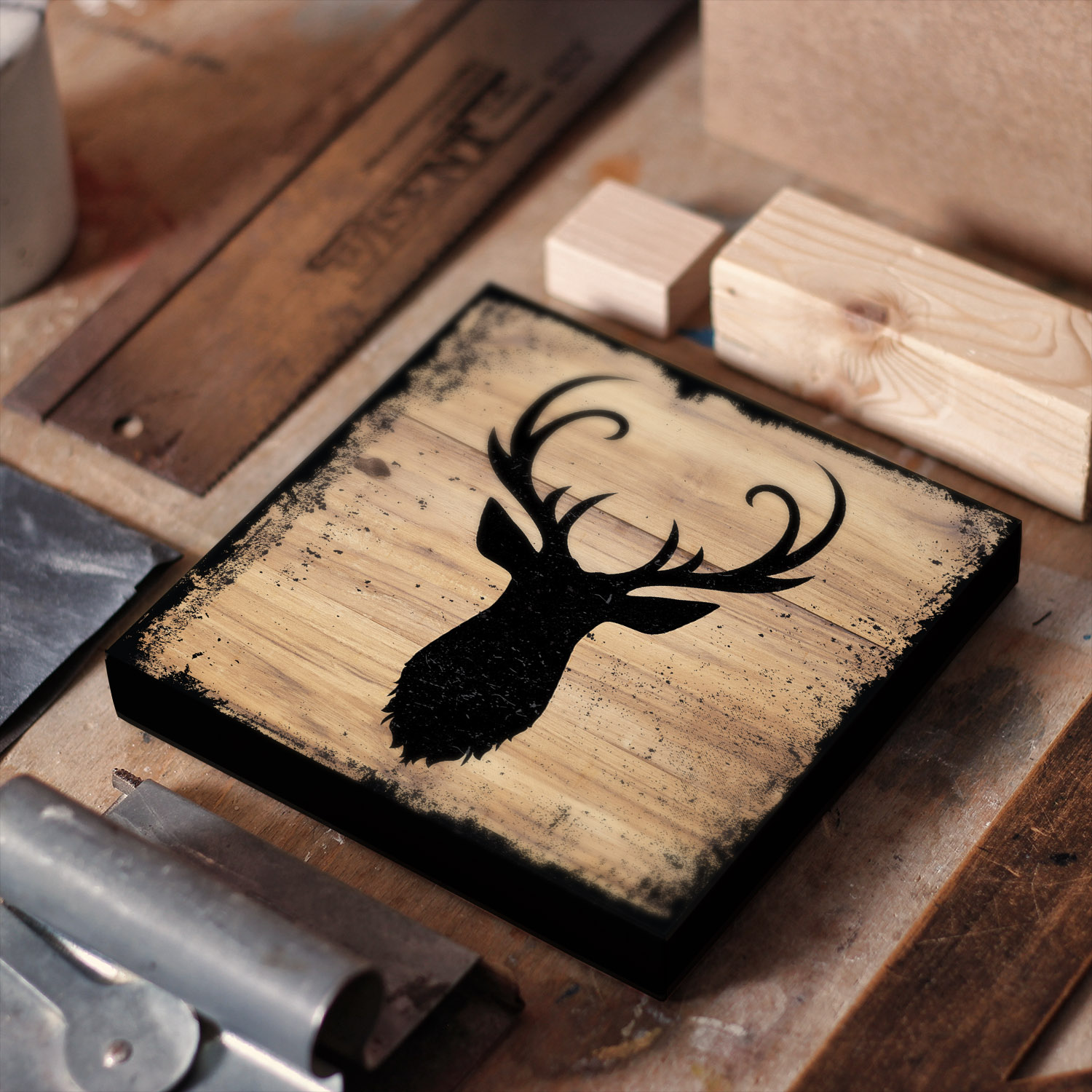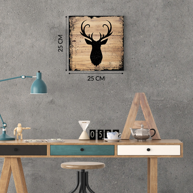 Geyik Silüeti Ahşap MDF Tablo, 25x25CM ve 1.8CM Kalınlığında