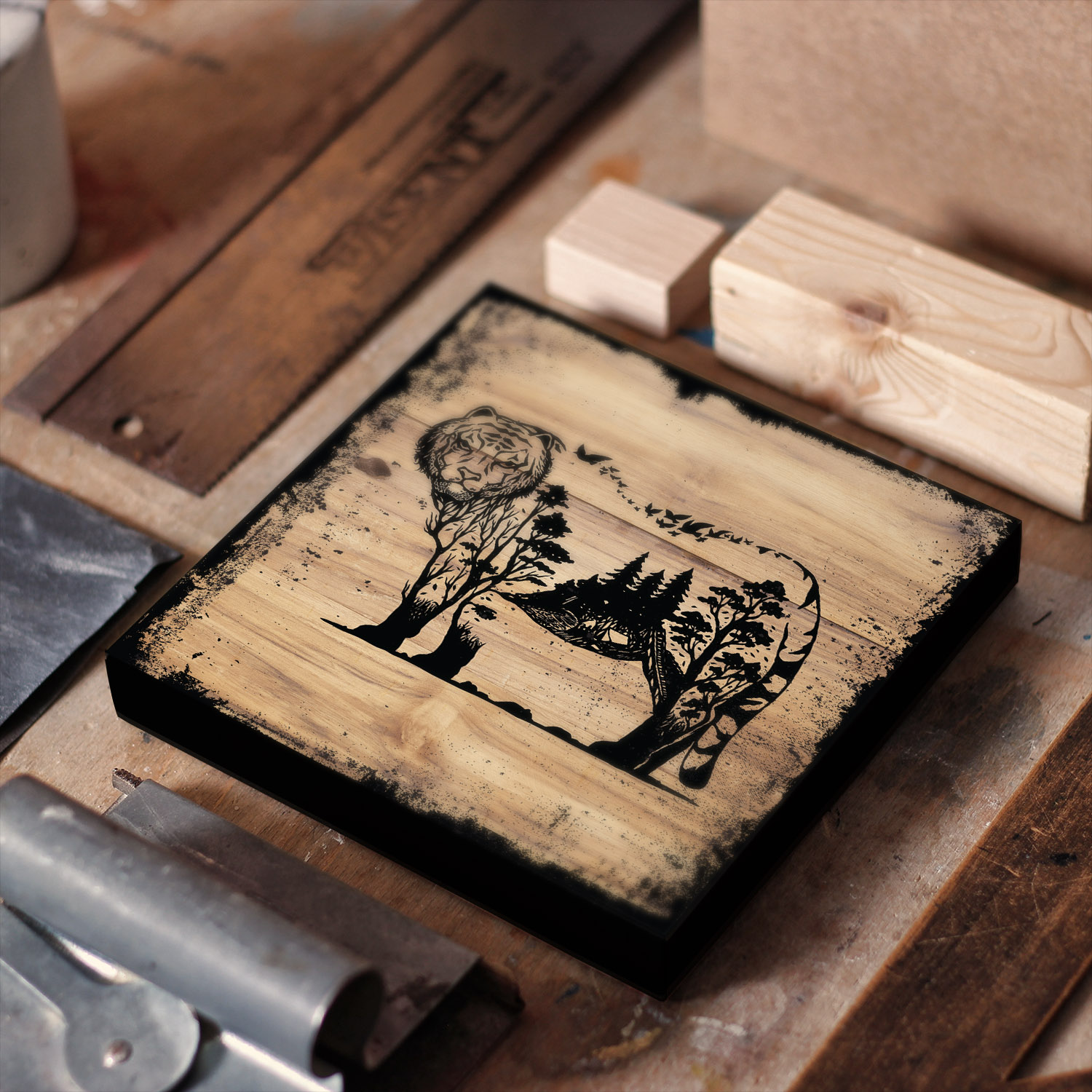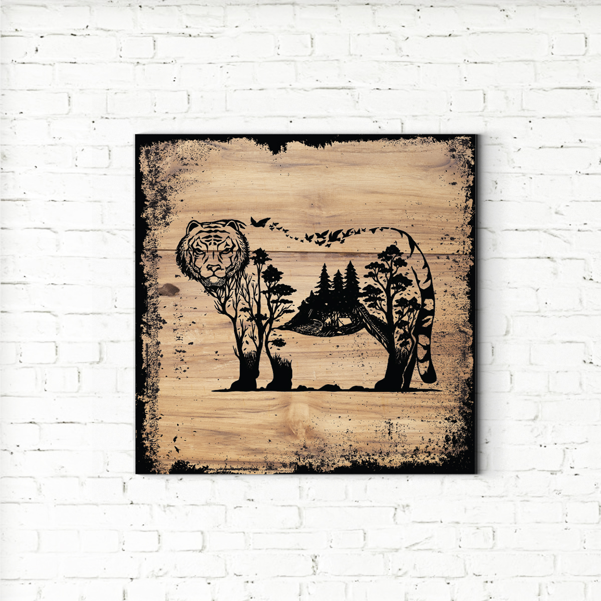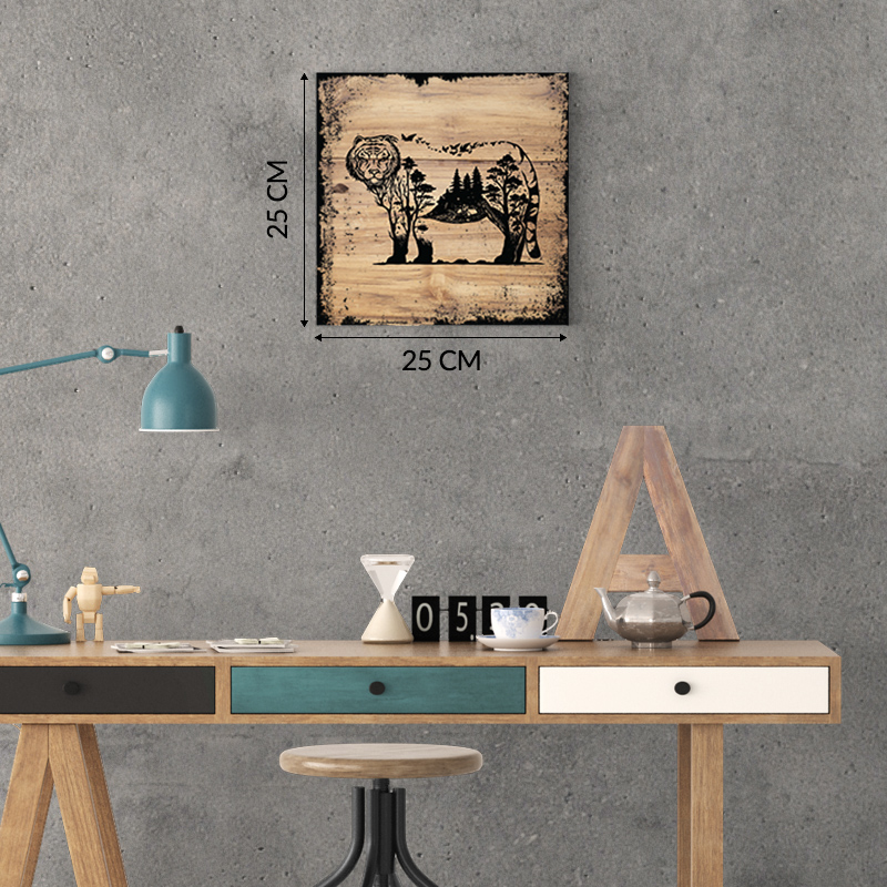 Kaplan ve Doğa Silüeti Ahşap MDF Tablo, 25x25CM ve 1.8CM Kalınlığında