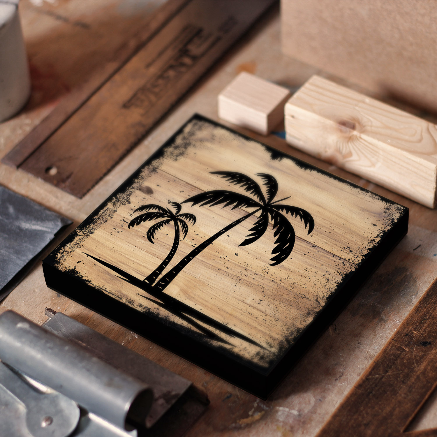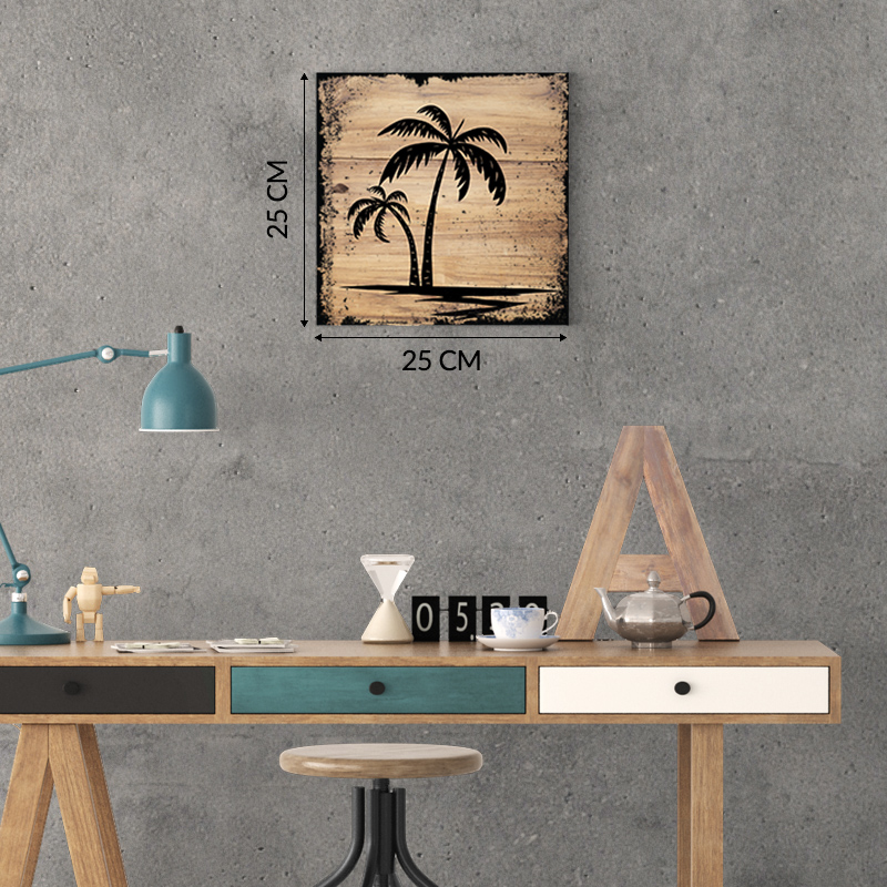 Palmiye Ağacı Silüeti Ahşap MDF Tablo, 25x25CM ve 1.8CM Kalınlığında