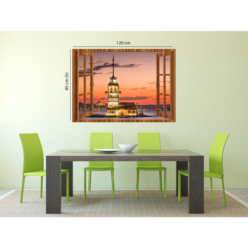 Odanızın bir duvarın da harika bir pencereye yer verebilir ve güzel bir görünüm sağlayabilirsiniz. 3 Boyutlu pencere duvar stickerları ile evlerinizin odalarını renklendirebilirsiniz. Giydirme yapılacak duvar zemininin düz olması hem görüntü açısından daha estetik olacak, hem de uygulaması kolay olacaktır. 3 Boyutlu pencere duvar sticker ürünün daha uzun ömürlü olmasını sağlamak için temizliğinde sadece nemli bez kullanınız.