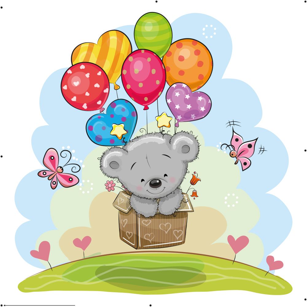Sevimli Ayıcık ve Balonlar Konsept Çocuk Odası Duvar Sticker