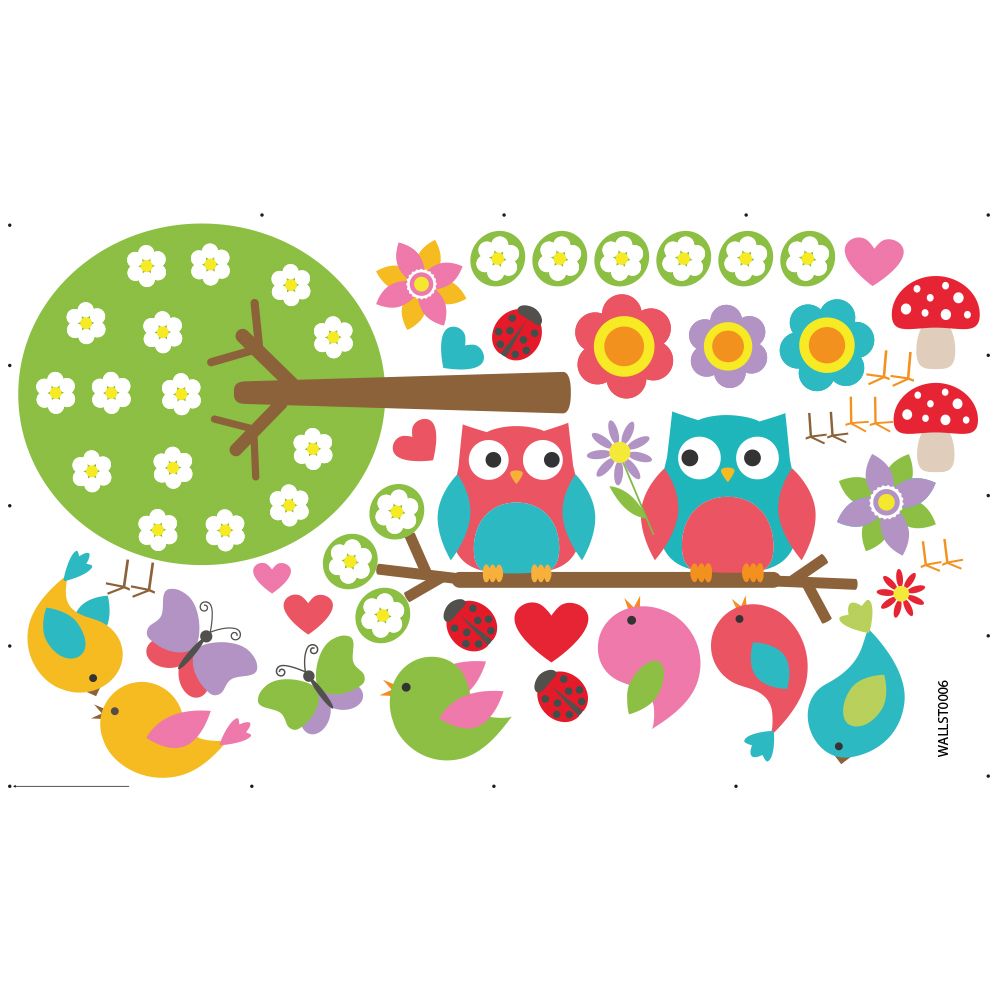 Sevimli Baykuş, Çiçek, Ağaç ve Kuş Çocuk Odası Duvar Sticker