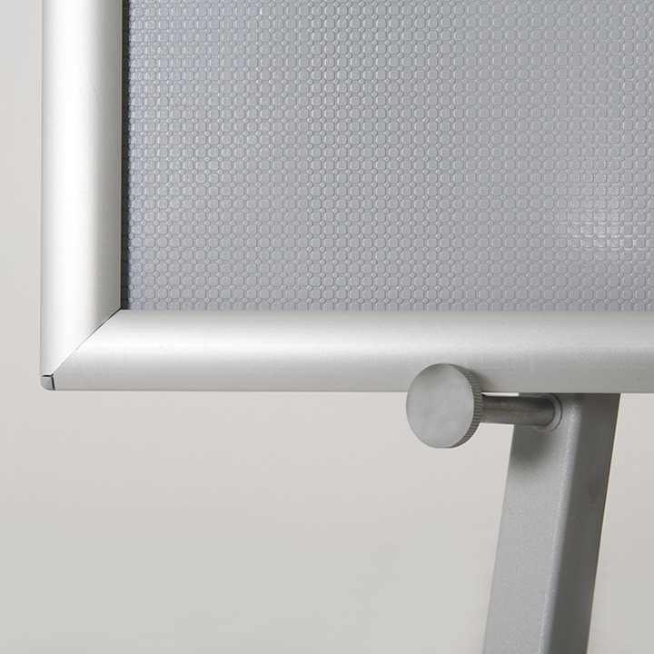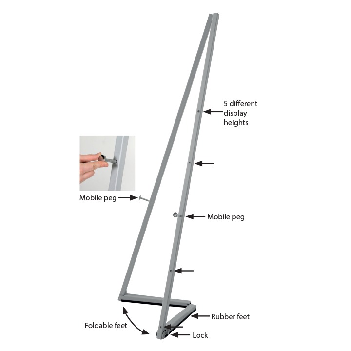Snap çerçeveler ile de rahatlıkla kullanılabilir ve snap çerçeve içerisinde görsellerinizi modern çelik şövale ile sergileyebilirsiniz. Taşınabilir mandallar yardımı ile 5 farklı boyutta sergileme yapmanıza olanak sağlar.