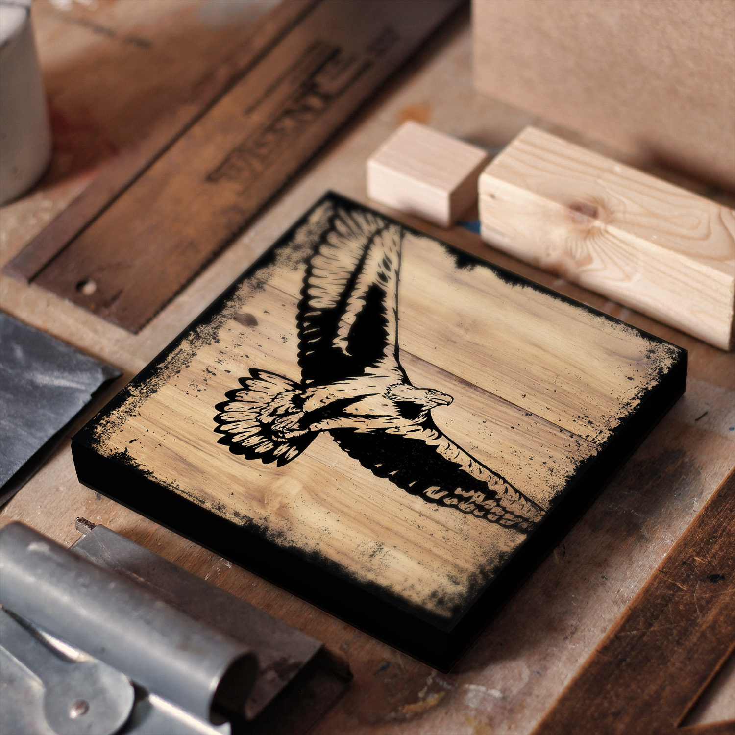Uçan Kartal Silüeti Ahşap MDF Tablo, 25x25CM ve 1.8CM Kalınlığında