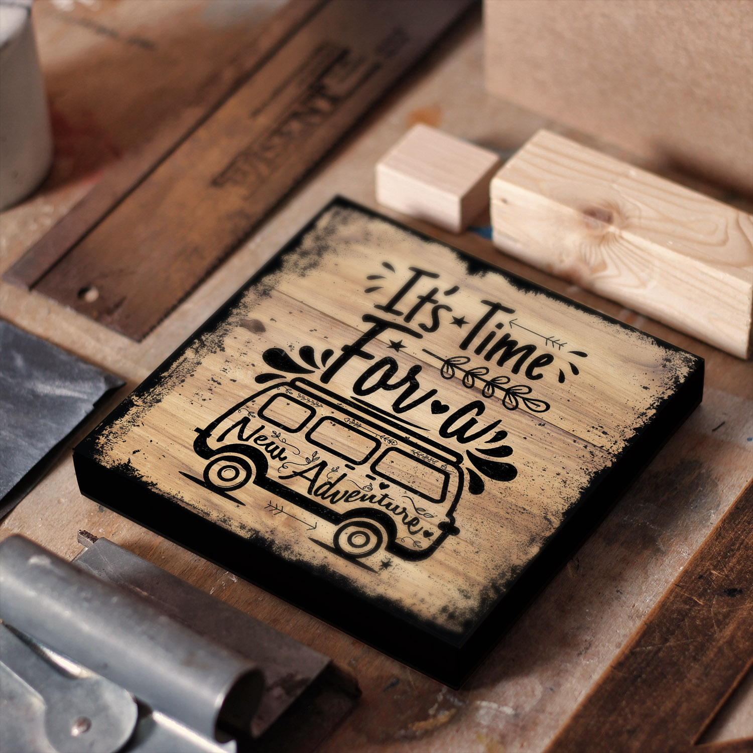 Vosvos Silüeti Ahşap MDF Tablo, 25x25CM ve 1.8CM Kalınlığında