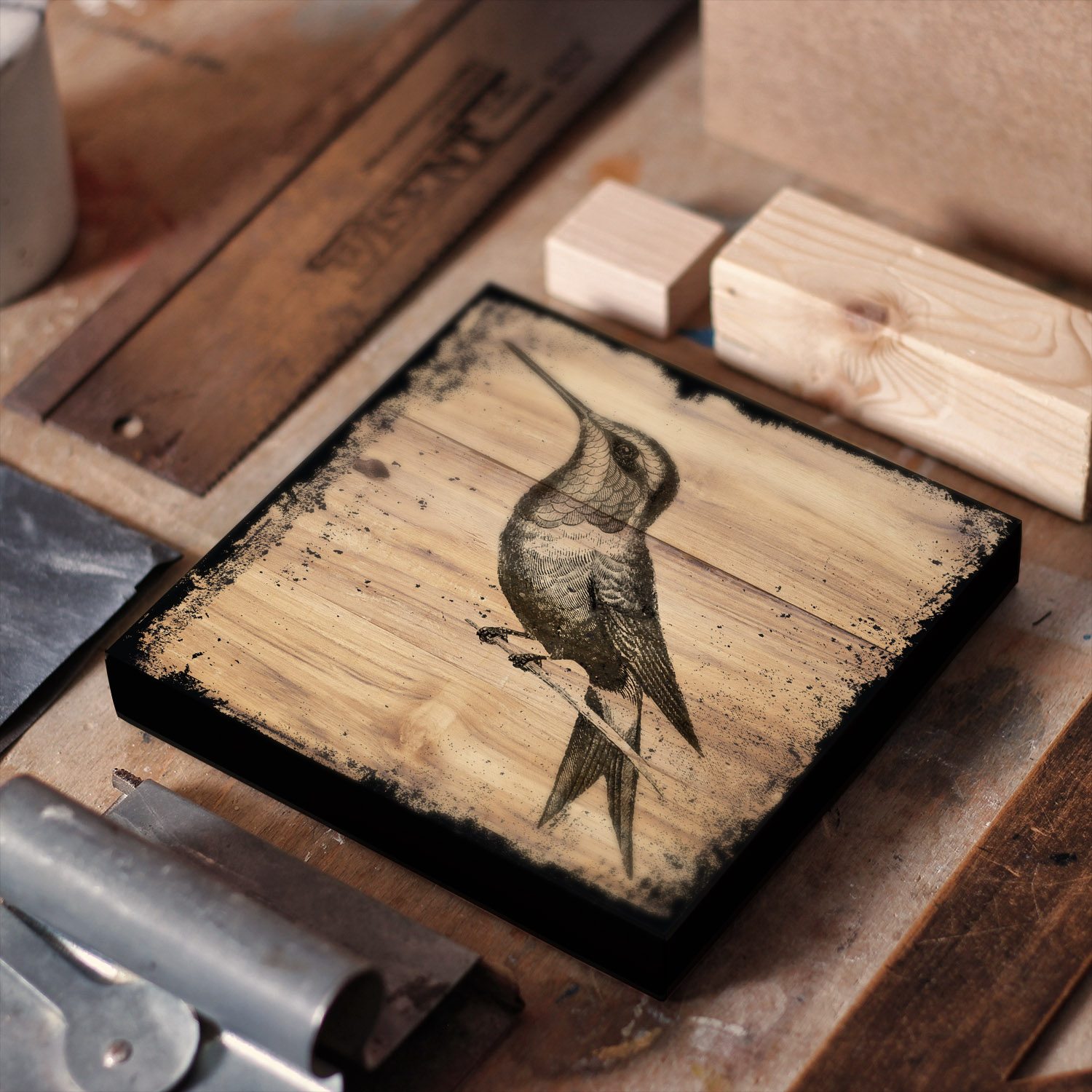 Yalıçapkını Kuşu Silüeti Ahşap MDF Tablo, 25x25CM ve 1.8CM Kalınlığında