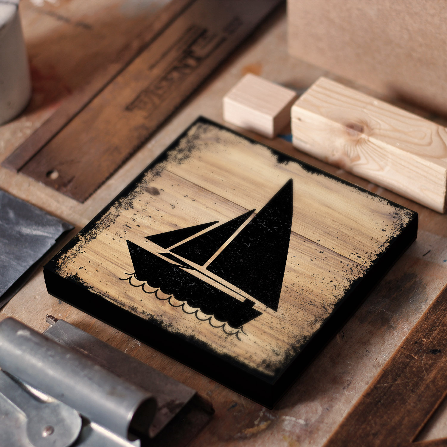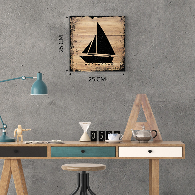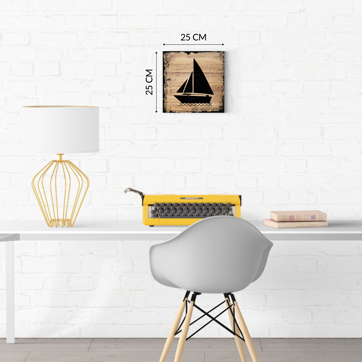 Yelkenli Silüeti Ahşap MDF Tablo, 25x25CM ve 1.8CM Kalınlığında